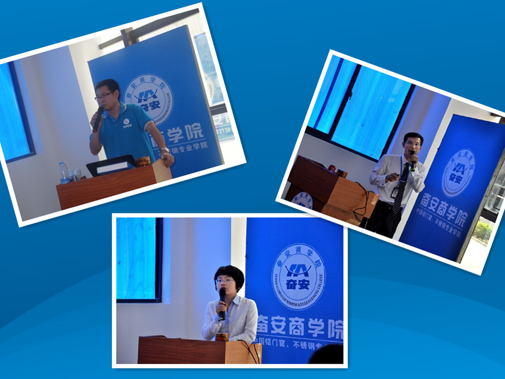“房地產項目和門窗公司為什么要選擇系統門窗”“奮安圣羅德系統門窗各系列功能介紹及體驗中心現場實物講解”“鋁型材生產工藝講解及生產流程參觀 ”“奮安‘雙零雙百’后勤保障” “圣羅德系統門窗為地產商、門窗公司提供的增值服務”“圣羅德各系列(型材、配件、加工制作)成本分析”“門窗公司如何提升系統門窗的制作、安裝水平”“做系統門窗需要哪些設備”“奮安不銹鋼產品相關知識”等鋁型材、不銹鋼饕餮盛宴讓學員受益匪淺。