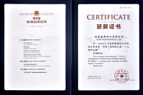 【奮安榮獲榮譽之后的責任與擔當】:感謝奮安友人長期支持與關(guān)愛,奮安在9月9日,榮獲第九屆亞洲品牌所評選的“中國鋁行業(yè)十大領(lǐng)軍品牌”,總經(jīng)理黃秀華女士榮獲“亞洲品牌優(yōu)秀女企業(yè)家”。值此佳際,與您分享奮安人的喜悅,奮安人更加竭盡全力以 “優(yōu)質(zhì)的產(chǎn)品+優(yōu)質(zhì)的服務+愛心”的理念,來生產(chǎn)好產(chǎn)品、服務好客戶(一切只為客戶狂),以積極嚴謹?shù)膽B(tài)度去承擔品牌發(fā)展的責任和挑戰(zhàn),向行業(yè)巔峰攀登,造就中國鋁型材行業(yè)的領(lǐng)導品牌。