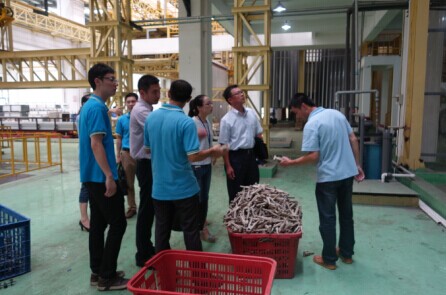參觀伊始,總監詳細地向貴賓介紹奮安集團的發展歷程、獨特的銷售理念和優質的配套服務。期間,貴賓們還特別考察我司全亞洲第一條月產量5000T全自動立式氧化電泳線,并詳詢型材氧化表面處理工藝相關要求、細節。此外,對我司每個生產環節的高標準品檢要求給予了高度的認可。