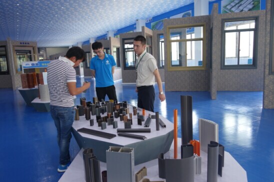 (總監在全國最大的門窗體驗中心向貴賓作介紹)