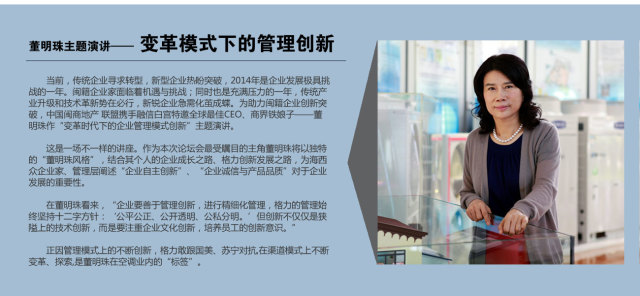 為助力閩籍企業(yè)家創(chuàng)新突破,11月28日,中國閩商地產(chǎn)聯(lián)盟攜手融信白宮舉辦“全球閩商盛宴共話商道群英會”論壇,格力集團董事長董明珠將出席盛宴,發(fā)表“變革時代下的企業(yè)管理模式創(chuàng)新”主題演講,與福建各界資深管理者論道商海突圍戰(zhàn)略,為福建中小企業(yè)轉(zhuǎn)型與突破助力。