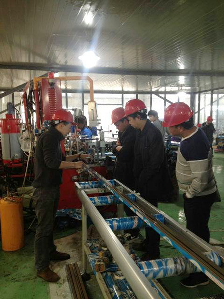 (梁總正在向貴賓介紹隔熱注膠工藝)