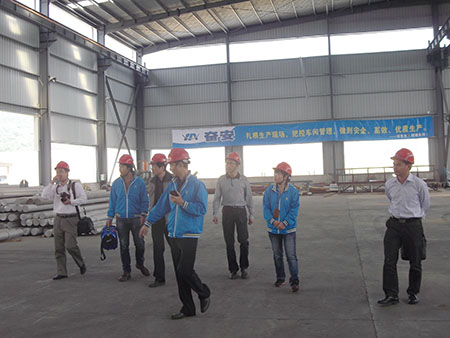 在我司生產(chǎn)副總歐開干、行政人事副總陳凌芹的引領(lǐng)下,周老師等人依次參觀型材生產(chǎn)的各個(gè)車間。目前我司擁有數(shù)十臺先進(jìn)的擠壓設(shè)備,多條立式噴涂生產(chǎn)線、立式氧化線、自動(dòng)包裝線、自動(dòng)輸送線,全程采用電腦自動(dòng)化控制。另外我司型材生產(chǎn)全部用優(yōu)質(zhì)原材料,生產(chǎn)過程中嚴(yán)格把控各道生產(chǎn)工序,可謂工藝先進(jìn),品質(zhì)卓越。