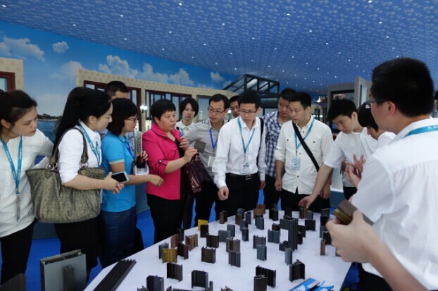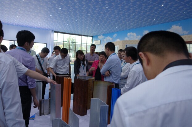 貴賓參觀奮安全國最大門窗體驗中心,總經理黃秀華女士詳細地向各位貴賓介紹奮安新窗型、新系統窗、新表面處理,如:仿古代的古鎮門窗、仿古欄桿、歐式系統門窗、現代窗、酒店專用窗,以及超細粉噴涂、4D木紋、電噴表面、特色鋁單板、鋁模板等一系列新表面、新產品。